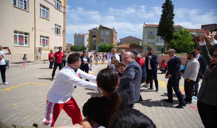Edirne Valisi Yunus Sezer, öğrencilerin devamsızlık yapmaması ve öğrencilere okul sevgisini aşılamak amacıyla çocuklarla birlikte geleneksel oyunlar oynadı.