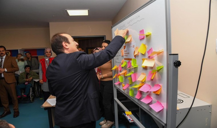 Vali Pehlivan, Mezitli ilçesindeki Engelsiz Yaşam Gençlik Merkezi’nde düzenlenen çalıştayda katılımcılarla buluştu. Atölyeleri ziyaret ederek çalıştaya katılanlarla sohbet eden Pehlivan, görüş ve önerileri dinledi. Sosyal Kapsayıcılık Atölyesinde kurulan panoya, ’engelli bireylerimizin sosyal ve ekonomik hayatta daha çok var olmalarını sağlamak bizler için sadece görev değil, insani ve vicdani sorumluluktur" ifadelerini içeren not yazarak yapıştıran Pehlivan, Engelsiz Gençlik Merkezi’nin diğer birimlerini de ziyaret ederek çalışma ve faaliyetleri hakkında bilgi aldı.