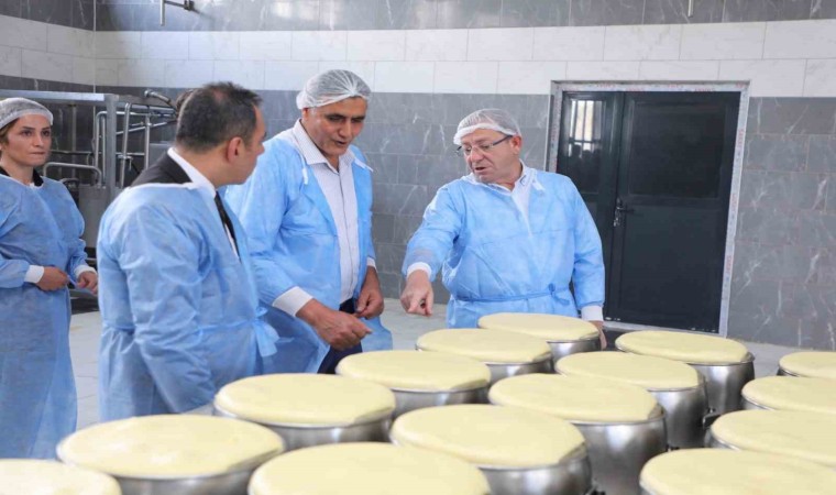 Vali Polat, Organize Sanayi Bölgesi’nde Kars’ın tescilli gastronomik lezzetlerinden Kars Kaşarı ile diğer süt ürünleri üretimi yapan bir tesisi ziyaret ederek, marka, üretim aşamaları, pazarlama ve satış konularında işletme yetkililerinden bilgi aldı.