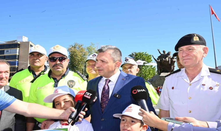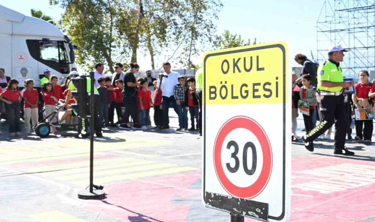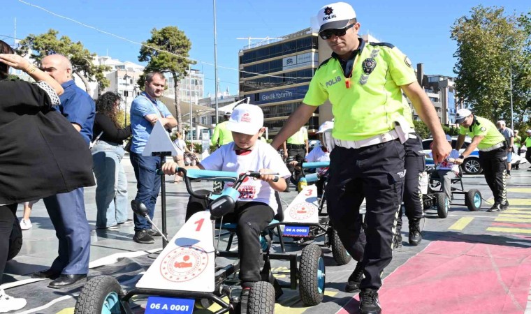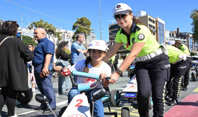 Cumhuriyet Meydanı’ndaki tırın içinde “Trafik nedir” konulu eğitim alan öğrencilere daha sonra meydanda kurulan trafik oyun alanında uygulamalı bilgilendirmeler yapıldı. Dört tekerlekli bisikletle okul yolu bölgesi şeklinde hazırlanan parkur üzerinde polisler eşliğinde araç kullanan öğrenciler, yaya geçidi ile hız sınırını öğrendi.