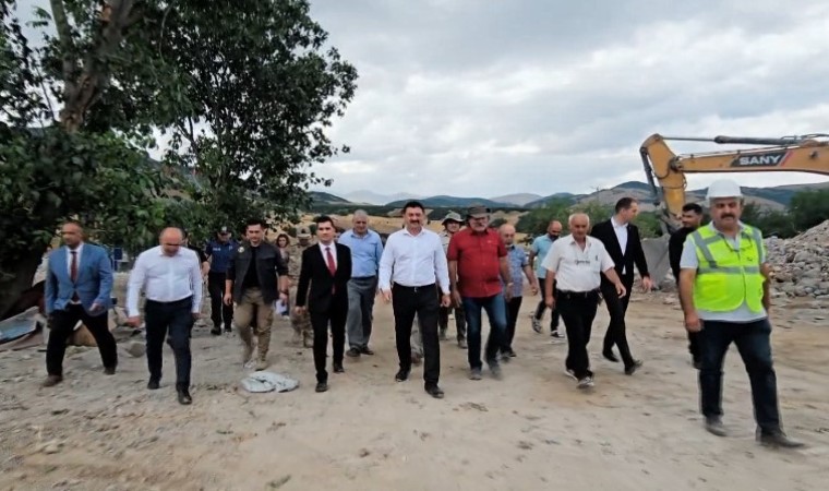 Vali Tekbıyıkoğlu, ilçe ziyareti kapsamında yıkım çalışmalarını da yerinde inceledi.