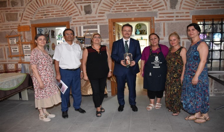 Vali Enver Ünlü daha sonra Hatuniye Camisi ile birlikte külliye olarak yaptırılan ve 2018 yılında tamamlanan restorasyonu sonrası hizmete açılan Kurşunlu Han’da Şehzadeler Belediyesi ve Şehzadeler Halk Eğitim Merkezi’nin katkılarıyla faaliyet gösteren geleneksel el sanatları atölyelerini gezdi. 37 usta öğretici tarafından toplam 44 ayrı kurs düzenlenen ve günlük 650 kursiyerin eğitim gördüğü atölyeleri ziyaret ederek kurslarda yapılan ürünler hakkında eğitmenlerden bilgi alan Vali Ünlü, geleneksel sanatlarımızın yaşatılmasından ve gelecek nesillere aktarılmasından dolayı duyduğu memnuniyeti ifade ederek, göz nuru ve hünerli ellerle hayat bulan ürünlerin çok kıymetli olduğunu belirtti. Vali Ünlü, Kurşunlu Han’da gerçekleştirilen faaliyetler dolayısıyla emeği geçen herkese teşekkür etti.