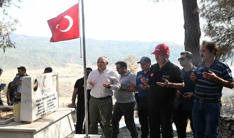 Vali Enver Ünlü, yangında alevlerin uğramadığı tek yer olan Şehit Piyade Er Halil İbrahim Ertaş’ın kabrini de ziyaret ederek, dua etti.
