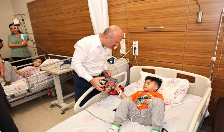 Hastanenin çocuk polikliniğini de ziyaret ederek yatan çocuklarla sohbete edip yakın ilgi gösteren Vali Dr. Osman Varol, çocuklara oyuncak ve çeşitli hediyeler verdi.