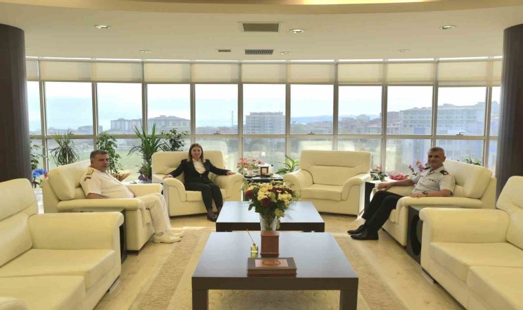Samsun İl Jandarma Komutanı Tuğgeneral Mustafa Bakçepınar ve Sahil Güvenlik Karadeniz Bölge Komutanı Tuğamiral Ahmet Bahadır da OMÜ Rektörü Prof. Dr. Fatma Aydın’a hayırlı olsun ziyaretinde bulundu. Rektörlük makamında gerçekleşen görüşmede Tuğgeneral Bakçepınar ve Tuğamiral Bahadır, Rektör Aydın ve ekibini tebrik ederek başarı dileklerinde bulundu. Rektör Aydın da nazik ziyaretleri ve iyi dilekleri için konuklarına teşekkür etti.