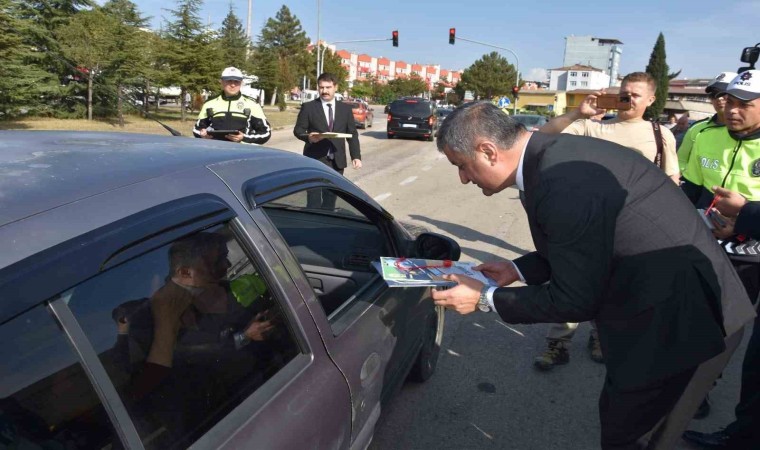 Karabük Valisi Mustafa Yavuz, trafik denetimlerine katılarak sürücülere uyarılarda bulunup çocuklara kırmızı düdük dağıttı.