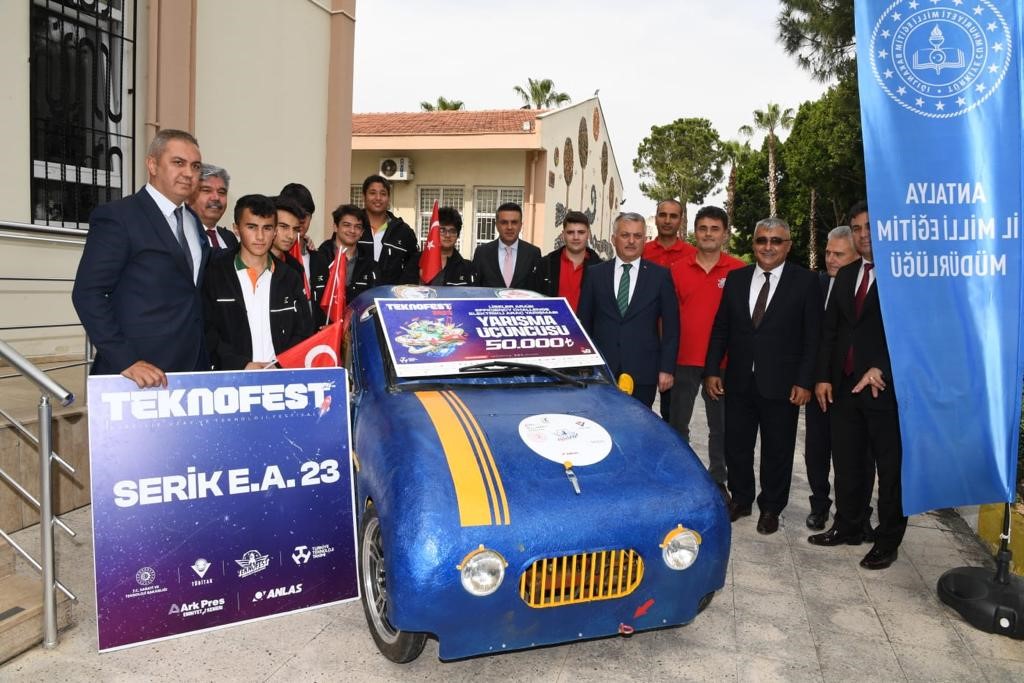 İl Milli Eğitim Müdürlüğünde düzenlenen etkinliğe Vali Ersin Yazıcı, İl Milli Eğitim Müdürü Emre Çalışkan, okul müdürleri, müdür yardımcıları, proje koordinatörü öğretmenler ve yarışmada dereceye giren öğrenciler ile velileri katıldı. Vali Ersin Yazıcı, ödül töreni başlamadan önce Serik Orhangazi Meslek ve Teknik Anadolu Lisesi ve Serik Özel Akdeniz Yükseliş Koleji Fen Lisesi öğrencileri tarafından tasarlanan, TEKNOFEST’te üçüncülük alan elektrikli araç hakkında öğrenci ve öğretmenlerden bilgi alıp, test sürüşü yaptı. TEKNOFEST 2023 Havacılık, Uzay ve Teknoloji Festivali’nde Antalya’dan 22 takım finale kalarak derece elde etti. Antalya, TEKNOFEST çerçevesinde 2 birincilik, 3 ikincilik ve 2 üçüncülük ile 6 farklı alanda ödül aldı.