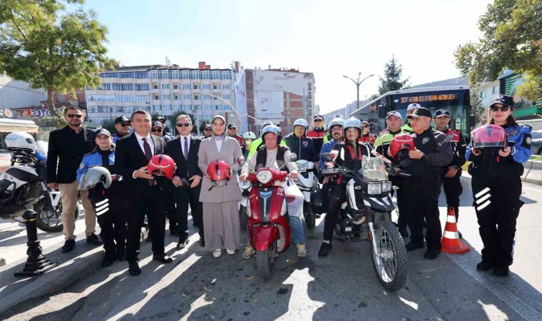Afyonkarahisar Valisi Doç. Dr. Kübra Güran Yiğitbaşı, İl Emniyet Müdürlüğü ekiplerince düzenlenen ’Kask Farkındalığı’ etkinliğine katılarak motosiklet sürücülerine kask dağıttı.