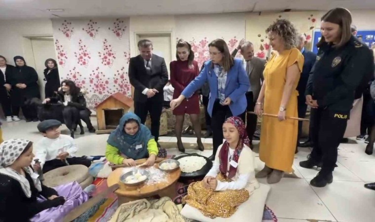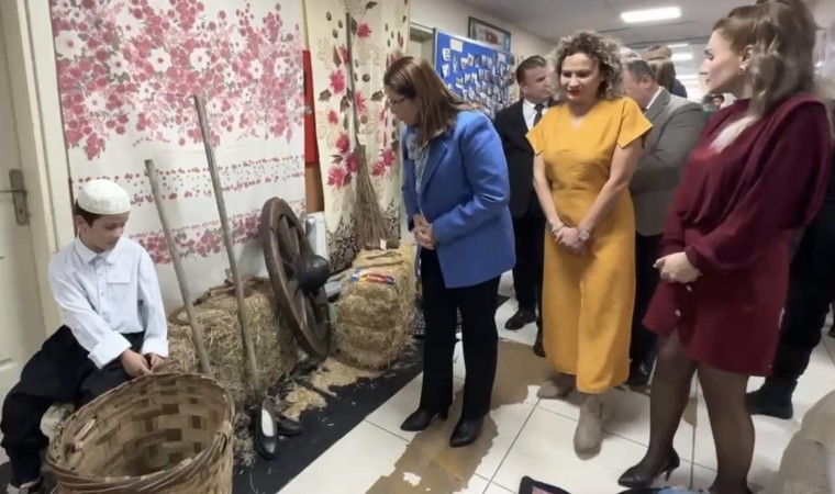 Renkli görüntülerin oluştuğu sergide Vali Arslan bir erkek öğrenciye sergilediği değirmenin nasıl çalıştığını anlatırken, bir kız öğrenciye ise yufkayı nasıl açması gerektiğini izah etti.