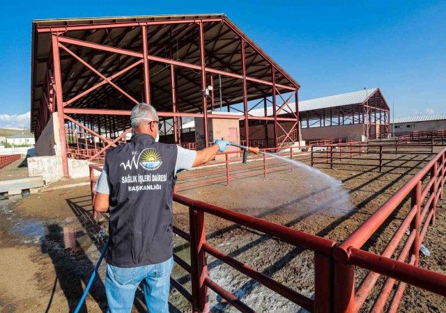 Van Büyükşehir Belediyesi canlı hayvan pazarını ilaçladı
