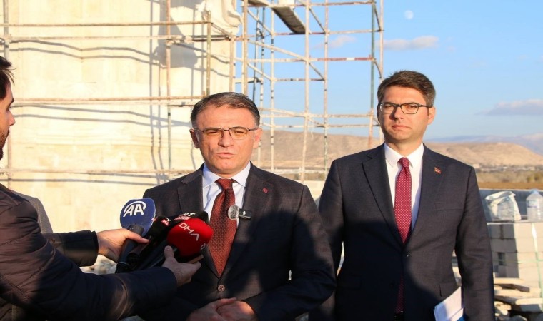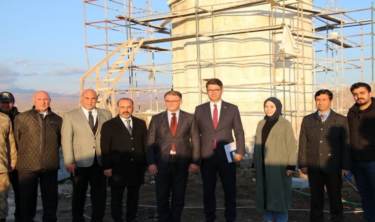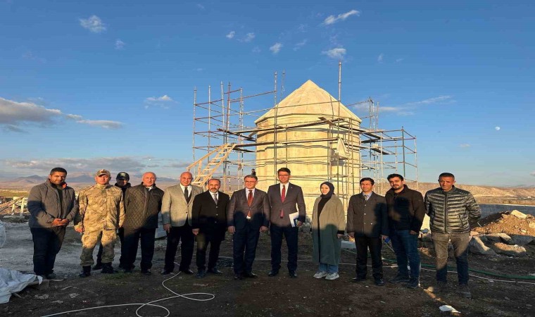 Kümbetin restorasyonunu inceleyen Van Valisi Ozan Balcı’ya Erciş Kaymakamı Murat Karaloğlu da eşlik etti.