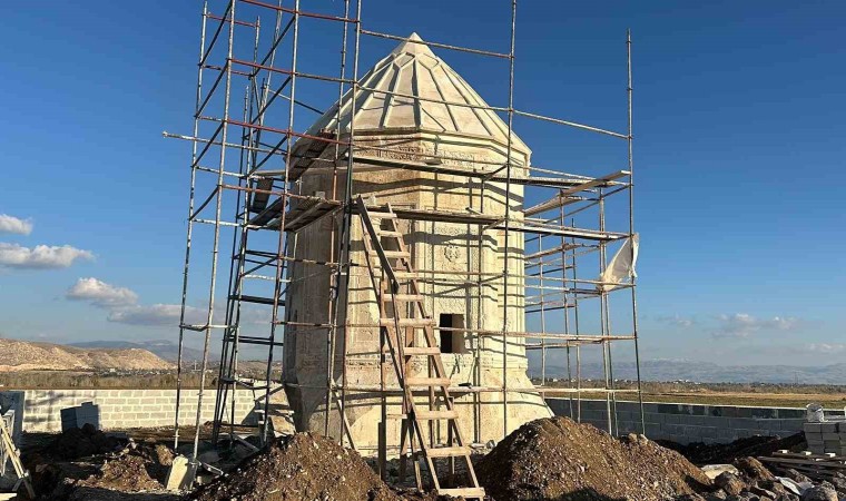 Van’ın Erciş ilçesinde 2011 yılında yaşanan depremde kısmen yıkılan ve üzerinde hükümdarlık simgeleri bulunan 600 yıllık Kara Yusuf Paşa Kümbeti’nde 1 yıl önce başlatılan restorasyon çalışmaları devam ediyor.