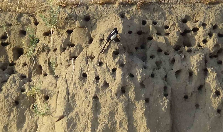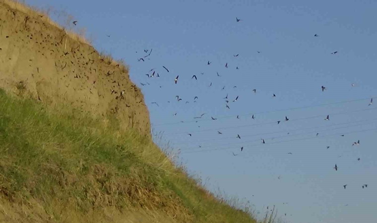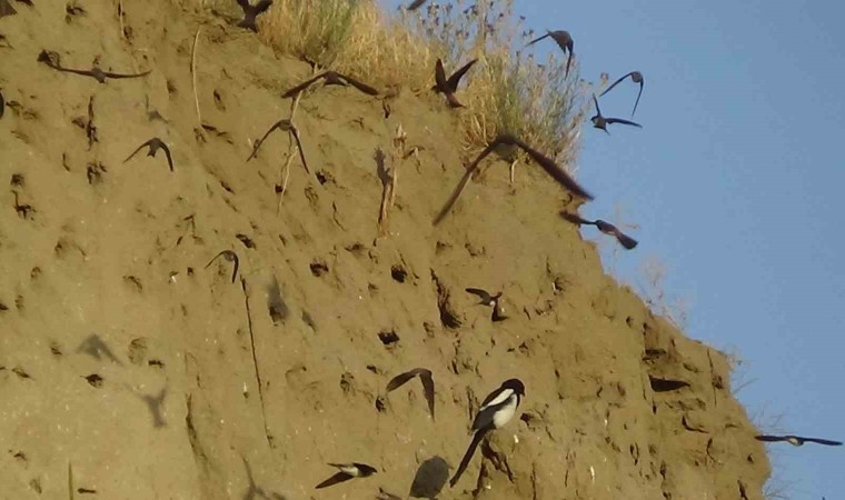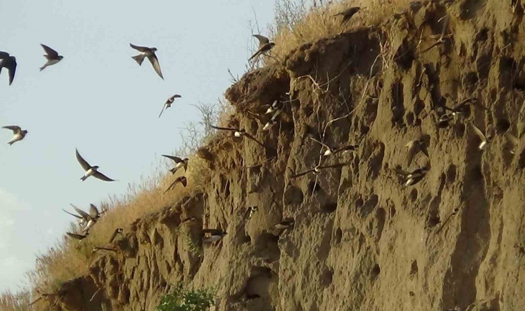 Van’ın Bahçesaray ve Tuşba ilçesinde toprak ve kayalara yuva yapan yüzlerce kırlangıç, vatandaşların ilgi odağı oldu.
