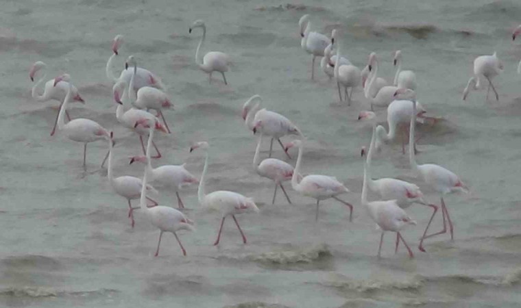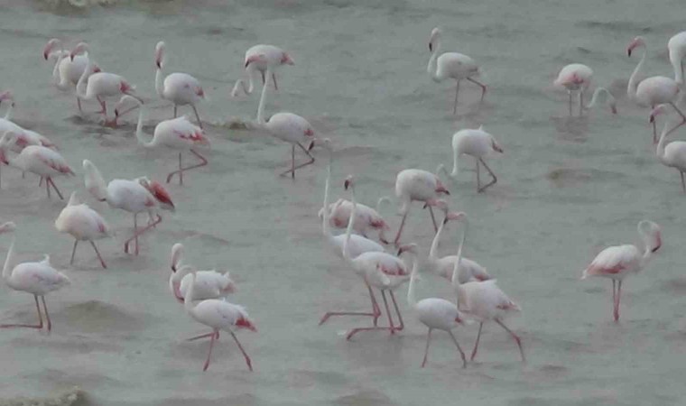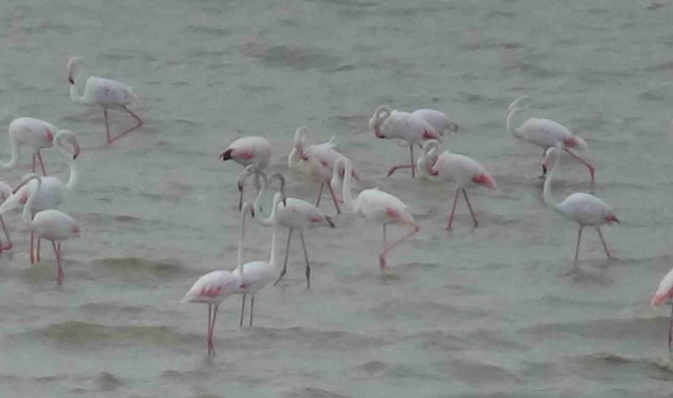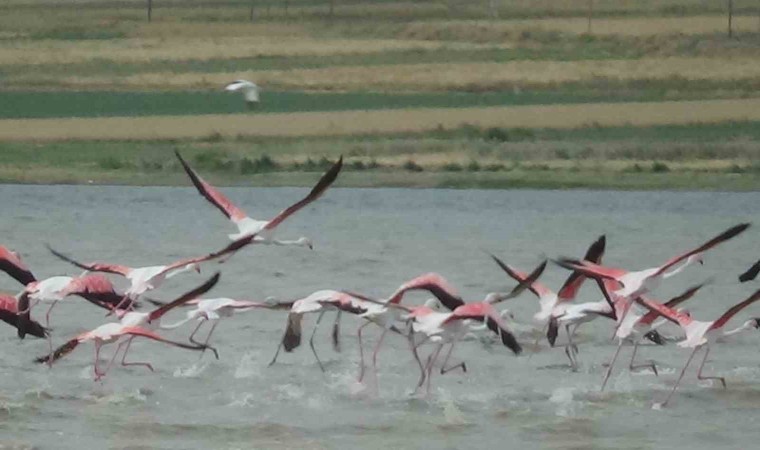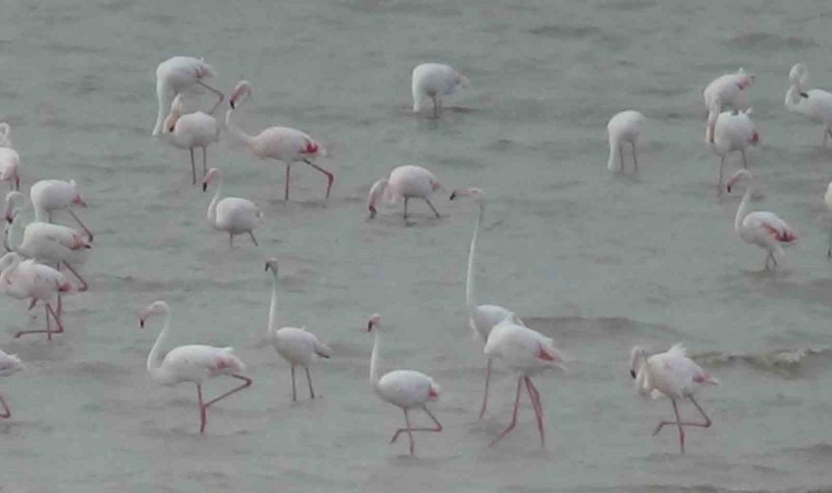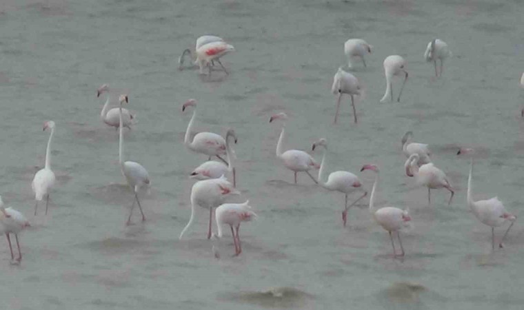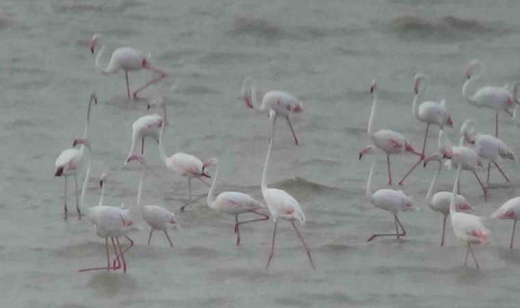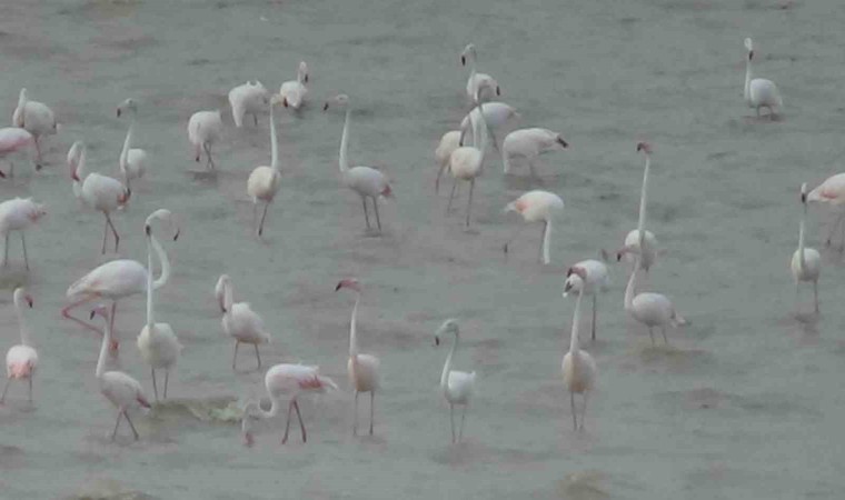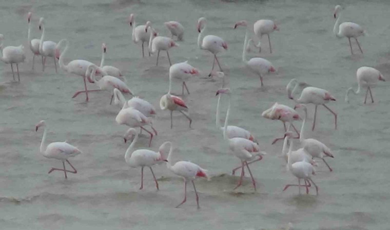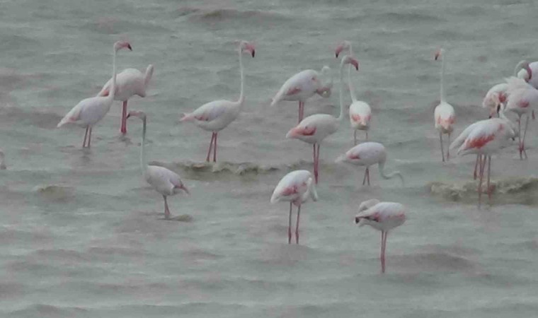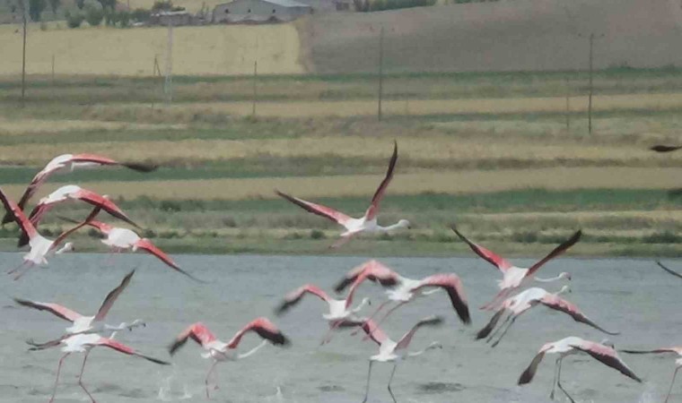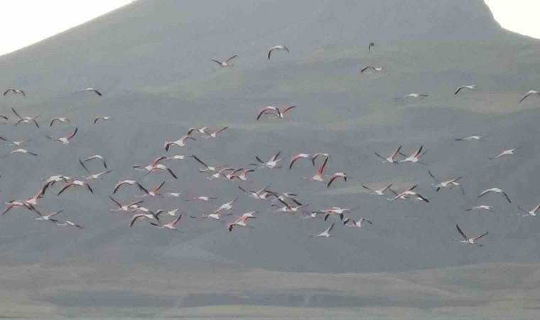 Van Gölü Havzası’nda bulunan sulak alanlara her yıl belirli dönemlerde renk katan flamingoların bu yıl yine geldiği Erçek Gölü kıyısında görsel şölen başladı.