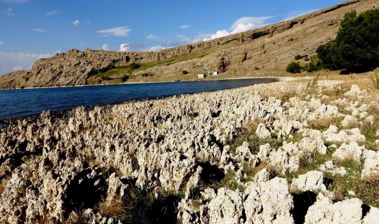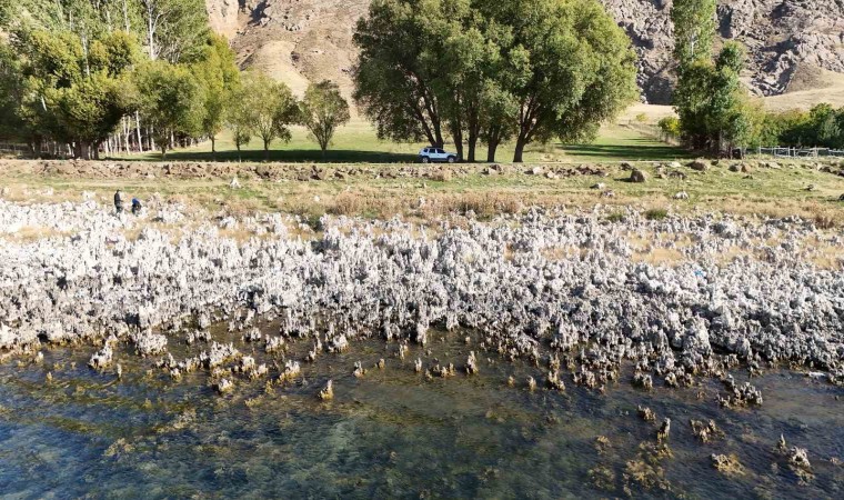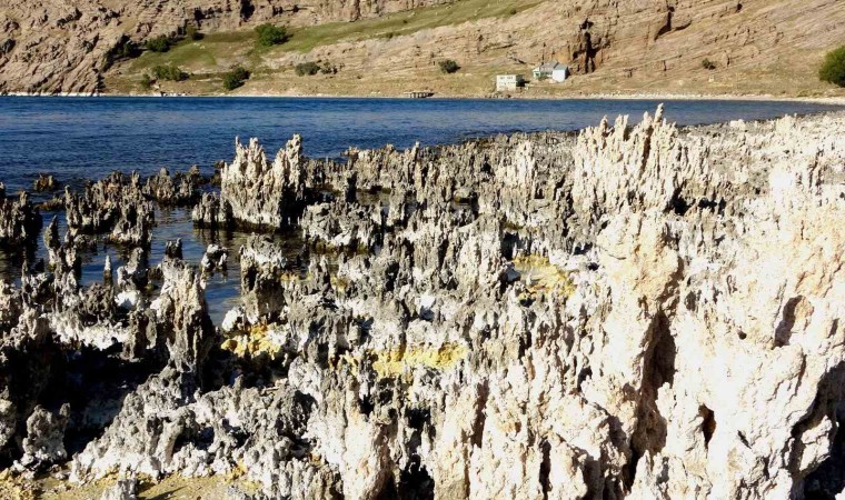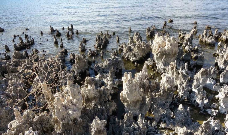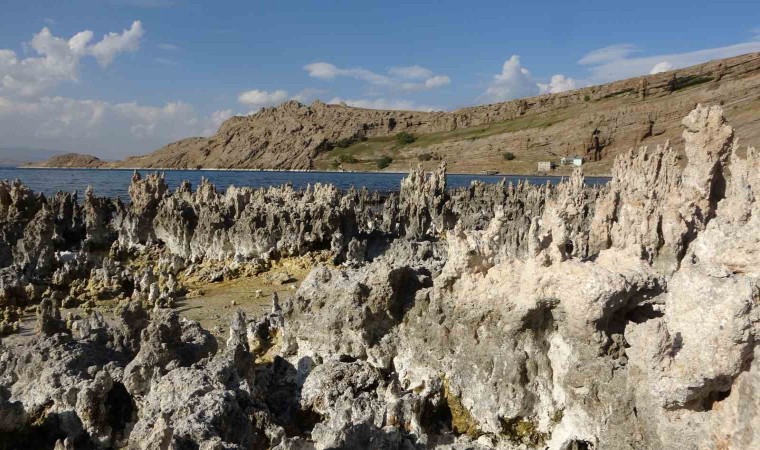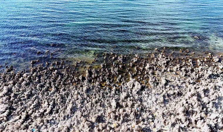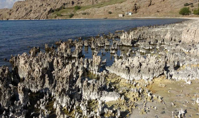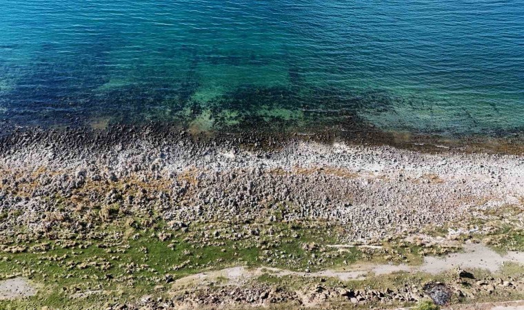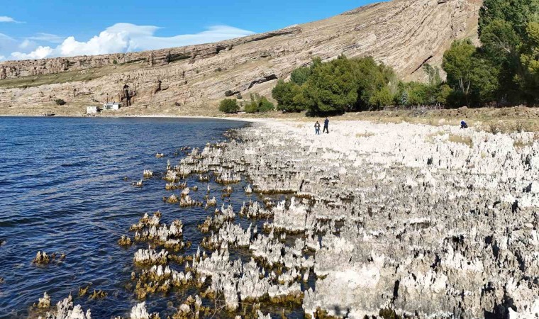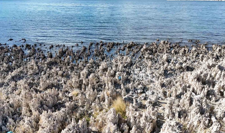 Türkiye’nin tek sodalı gölü olma özelliğini taşıyan Van Gölü’nde, son yıllarda sularının çekilmesiyle sahiller mikrobiyalit tarlasına döndü.