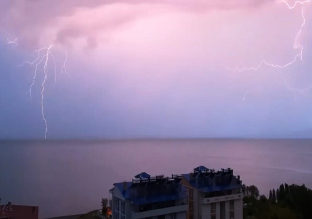 Meteoroloji uyarısının ardından Bitlis'in Ahlat ilçesinde ortaya çıkan gök gürültülü sağanak yağış, akşam saatlerinde şiddetini arttırdı. Bu yağmurun eşlikçisi olarak Van Gölü üzerinde göz alıcı şimşekler belirdi. Şimşekler, geceyi aydınlatarak hem korkutan hem de büyüleyici bir manzara oluşturdu. Van Gölü kıyısında evleri bulunan vatandaşlar, bu görsel şöleni izlemekten keyif aldılar ve cep telefonlarıyla bu anları kaydetmeye çalıştılar. Bu etkileyici doğa olayları, izleyenleri hem heyecanlandırdı hem de hayran bıraktı.