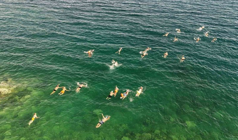 Burada sağlık kontrolünden geçen yüzücülere protokol tarafından madalya ve ödülleri takdim edildi.