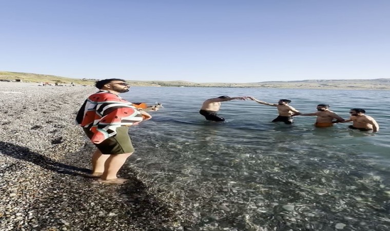 Van’da Kurban Bayramı tatilini değerlendiren bir grup arkadaş, sahilinde piknik yaptıkları Van Gölü’ne girerek hem serinlediler hem de halay çekerek eğlendiler.