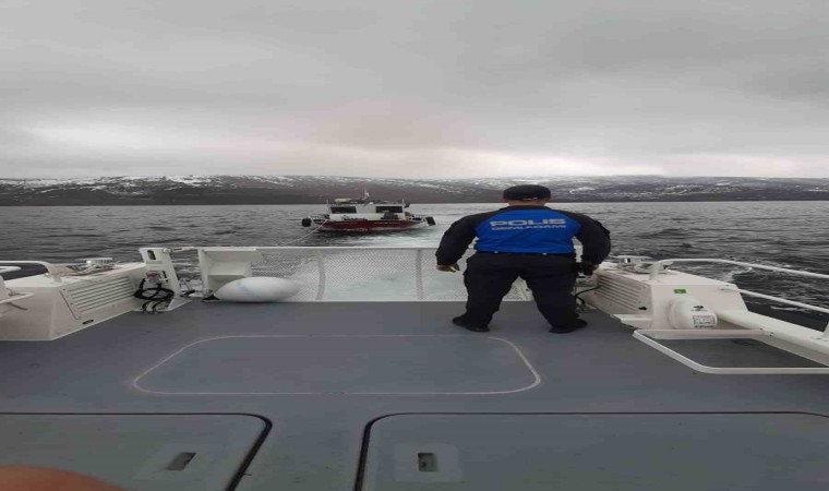 Van Gölü’nde motor arızası nedeniyle sürüklenen balıkçı teknesi deniz polisleri tarafından kurtarıldı.