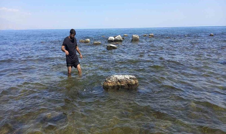 Van Gölü’nde suların çekilmesiyle Bitlis’in Tatvan ilçesi kıyılarında yüzlerce yıllık olduğu öngörülen tarihi toplu mezar alanı ortaya çıktı.
