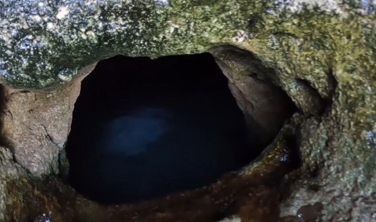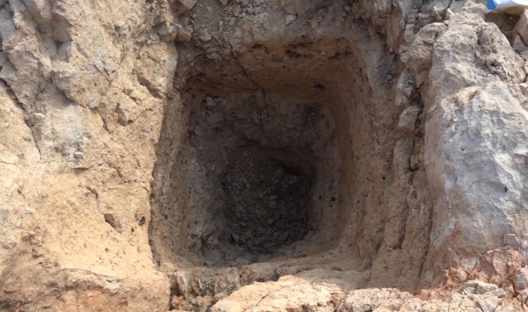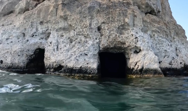 Van’ın Erciş ilçesinde Van Gölü sularının çekilmesiyle birlikte kaya mezar ve odalar gün yüzüne çıktı.