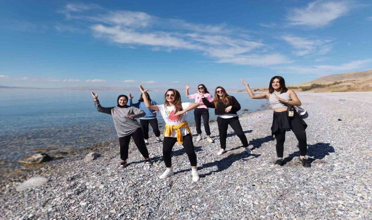 Dünyanın en büyük sodalı gölü olan Van Gölü’ne dikkat çeken sporcu kadınlar, gölde ilk kez zumba yaparken aynı zamanda çevre temizliği gerçekleştirdi.