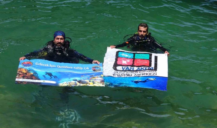 Sualtı Arama Kurtarma Eğitim Derneği (AKEM) üyeleri, “5 Haziran Dünya Çevre Günü” dolayısıyla Van Gölü’nün derinliklerine dalış yaptı.