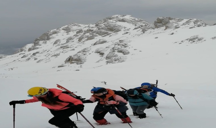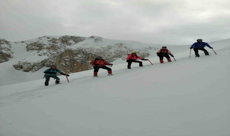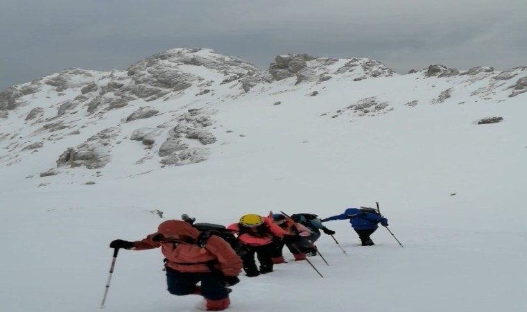 Dağcı Murat Akşit, yoğun kar yağışı altında sahur yapıp sabah namazı kıldıktan sonra harekete geçtiklerini belirterek, “Düşük tempo ile devam edip 2 bin 900 rakımlı bölgeye yaklaşınca bu etabın buz ve çığ riski oluşturan kornişle kaplı olduğunu gördük. Krampon ve kazma kullanarak son derece dikkatli bir şekilde sırt hata ulaştık. Burada da bizi çok yoğun sis karşıladı. Görüş mesafesinin 5 metreye düştüğü bu olumsuzlukta Wikiloc yardımıyla 3 bin 50 metrelik zirveye ulaştık. Oruçlu olduğumuz için zirvede kısa kalıp fotoğraf çektikten sonra inişe geçtik” dedi.