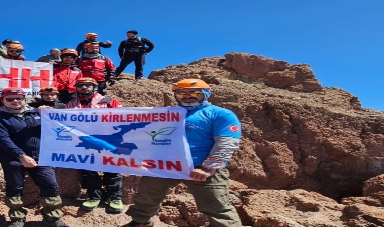 Kayseri’de bulunan Dağ Kurtları Derneği üyeleri, 3 bin 917 rakımlı Erciyes Dağı’na tırmanış yaparak Van Gölü’ne dikkat çektiler.