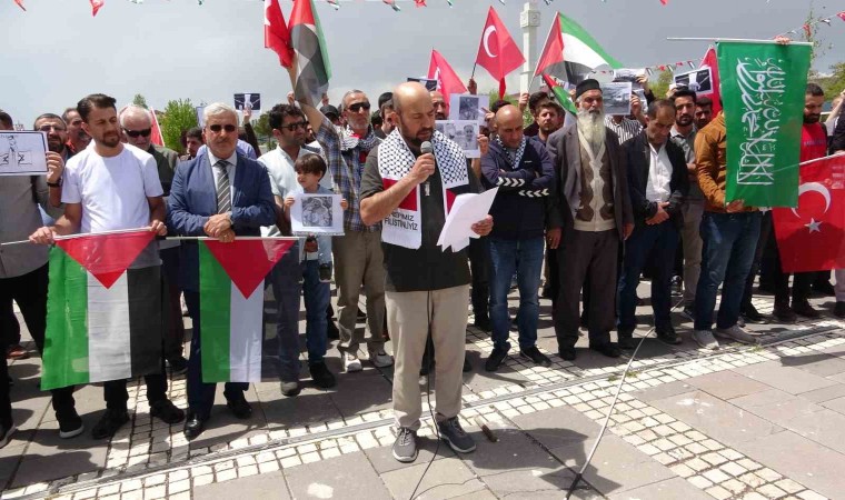 Burada grup adına basın açıklamasını okuyan Mehmet Emin Akaslan, Filistinlilerin 100 yılı aşkın süredir toprakları adım adım işgal edildiğini belirtti. Akaslan, “İşgal edilen toprakları dahil tamamı Konya’dan daha küçük olan Filistin’in, Van-Bahçesaray’dan bile küçük bir parçası olan Gazze Şeridi 17 yıldır Siyonist terör örgütü tarafından abluka altında tutulan, içeri girmesi de dışarı çıkması da Siyonistlerin insafına bırakılan Filistinlilerin ve Gazzelilerin; tüm bu olumsuzluklara rağmen yılmadan, yorulmadan, ümitsizliğe ve karamsarlığa düşmeden, çaba ve gayrete sarılarak, imanına ve Rabbine güvenerek, ilmi-bilimi, teknolojiyi en üst seviyede geliştirip kullanarak, çocuğuyla, genciyle, yaşlısıyla hep birlikte evini, yurdunu, toprağını savunduğunun, tüm şirretliklerine, iğrençliklerine, en küçük insani hassasiyet taşımamasına rağmen düşmanına benzemeden, kendine, inancına, değerlerine yaraşır bir şekilde yaptığı mücadelesinin, Siyonist terör örgütüyle, onun suç ortakları olan dünyanın sözde en güçlü devletlerinin tüm gücüyle saldırmasına rağmen hala hiçbir hedeflerine ulaşmalarına müsaade etmediklerini, hepsine birden meydan okuyup direndiklerinin 231. günü” dedi.