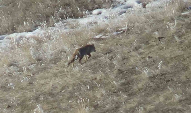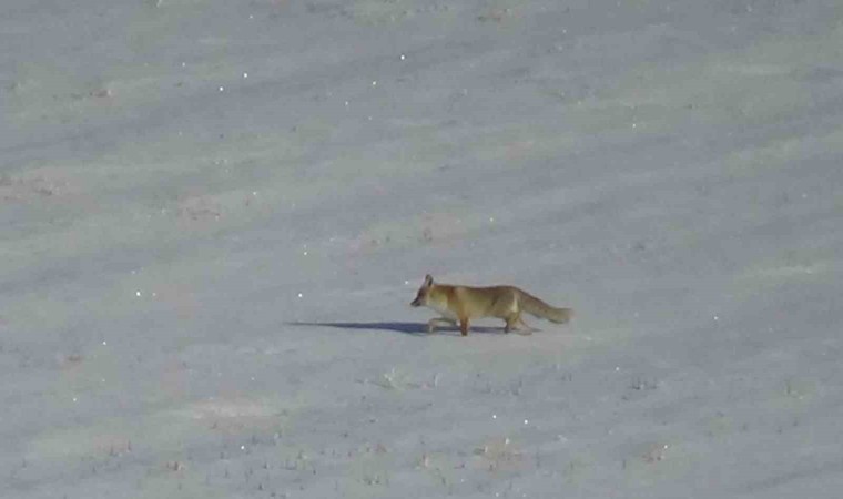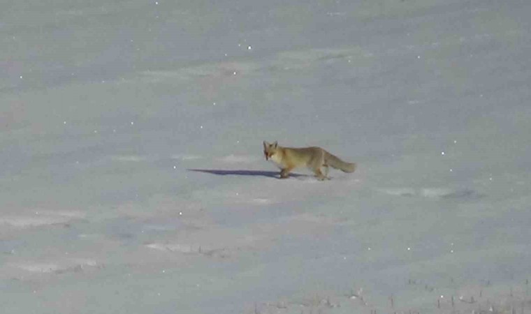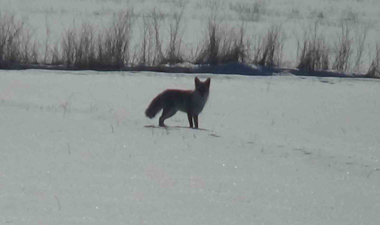 Van’da aç kalan tilkiler, kırsal alandaki yerleşim yerlerine yakın bölgelerde yiyecek aradı.