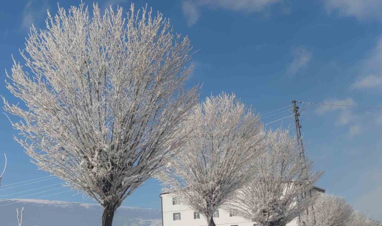 Van’da hava sıcaklığının sıfırın altına düşmesiyle ağaçlar kırağı tuttu.