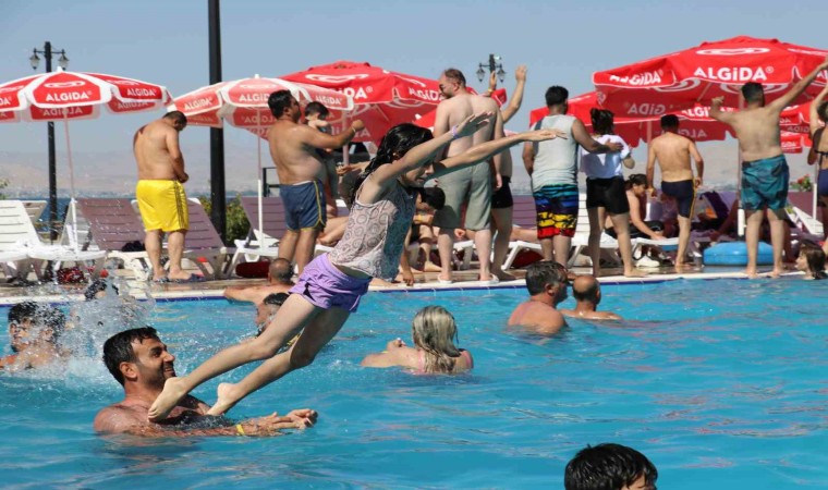 Van’ı çok sevdiklerini ve her fırsatta geldiklerini aktaran İranlı turistler, aşırı sıcaklardan bunaldıklarını ve bu nedenle havuz başında serinlediklerini söylediler.