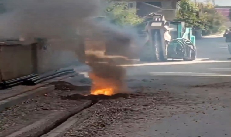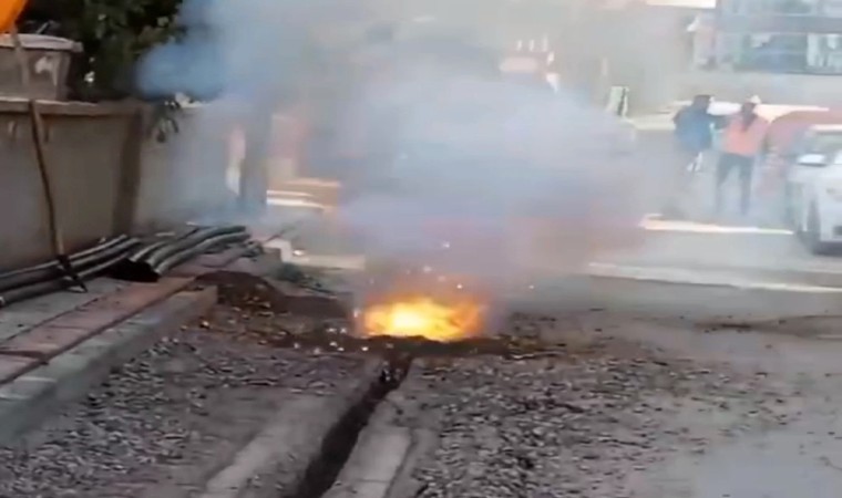 Van’da, altyapı çalışmaları sırasında zarar gören elektrik kabloları yanmaya başlayınca korku dolu anların yaşanmasına neden oldu.