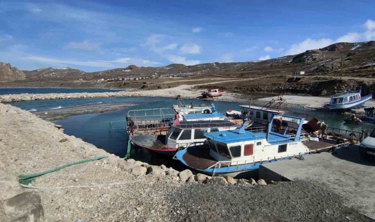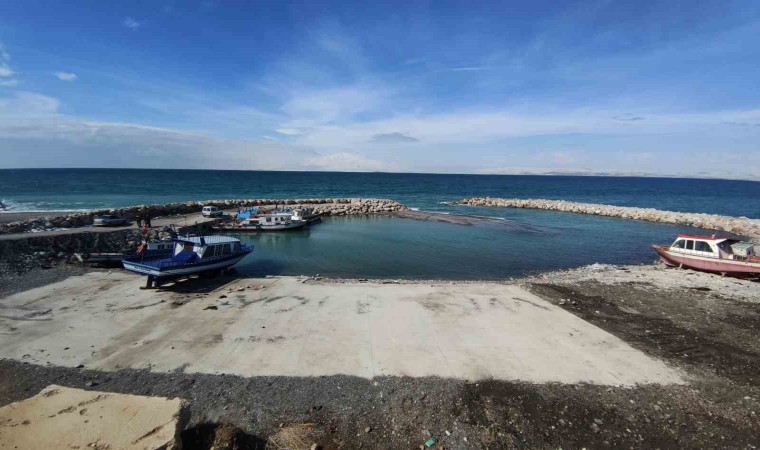 Van’ın Tuşba ilçesinde balıkçı barınağı olarak kullanılan limanının göle açılan kısmının kum ile dolmasıyla tekneler mahsur kaldı.