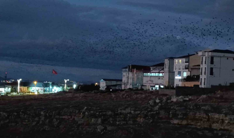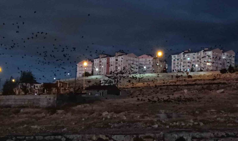 Van’ın Edremit ilçesinde toplanan binlerce karga, gökyüzünü adeta siyaha bürüdü.