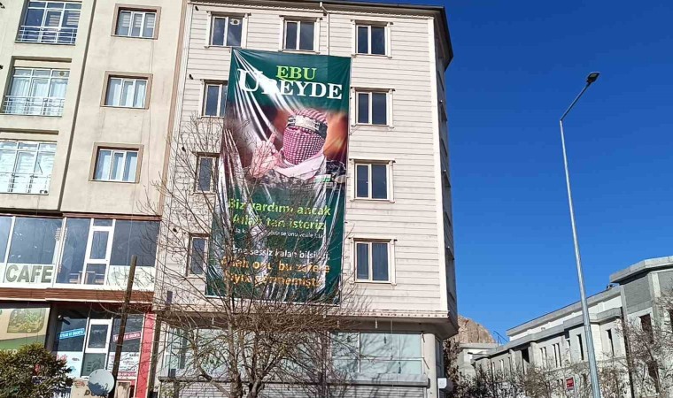 İsrail’in Gazze’deki saldırılarına karşı mücadele veren Kassam Tugayları’nın sözcüsü Ebu Ubeyde, direnişin sembolü haline geldi. Ülkenin birçok bölgesinde olduğu gibi Van’da da Gazze saldırılarını kınamak isteyen gençler, kentin en işlek caddelerinden biri olan Ferit Melen Caddesi üzerinde yer alan bir binaya Ebu Ubeyde’nin posterini astı.