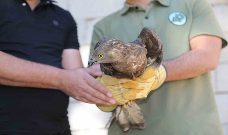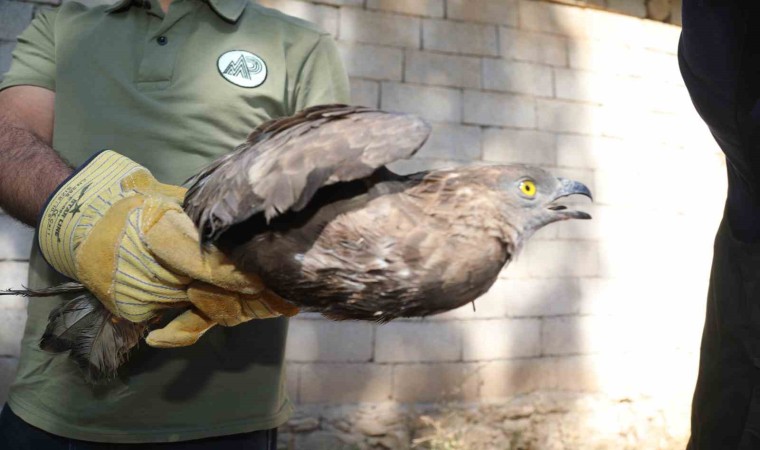 Van’ın Başkale ilçesinde arazide bitkin halde bulunan arı şahini tedavi altına alındı.
