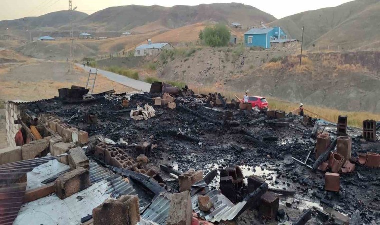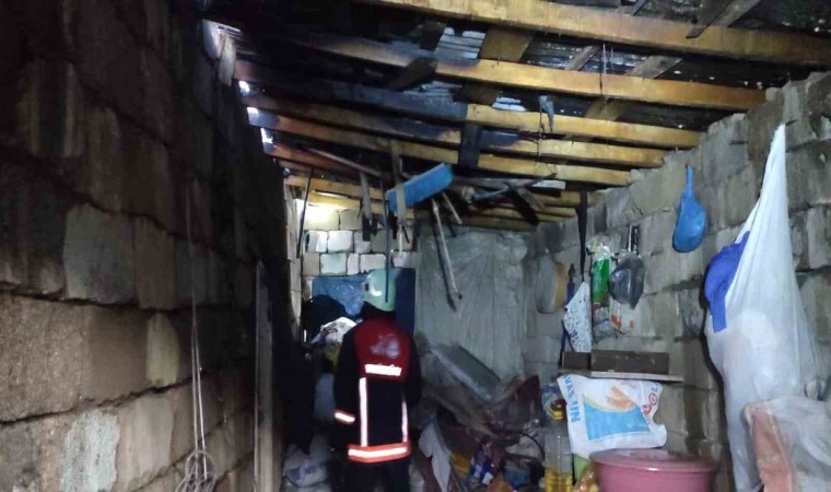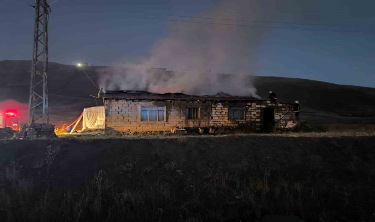 Van’ın Tuşba ilçesinde çıkan yangında bir evin çatısı tamamen yandı.