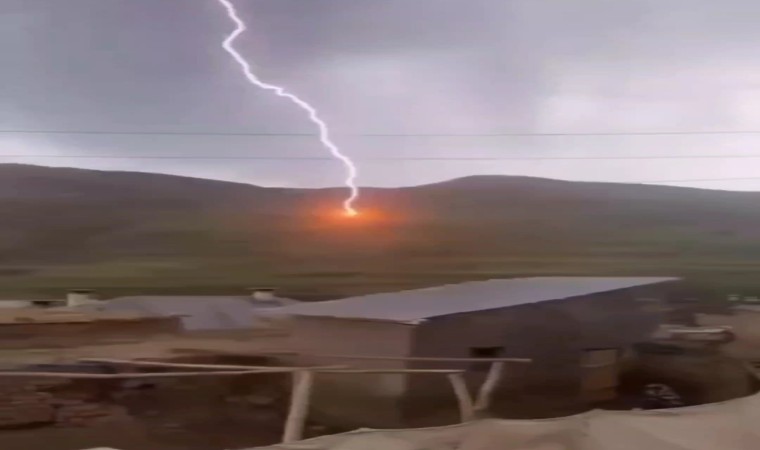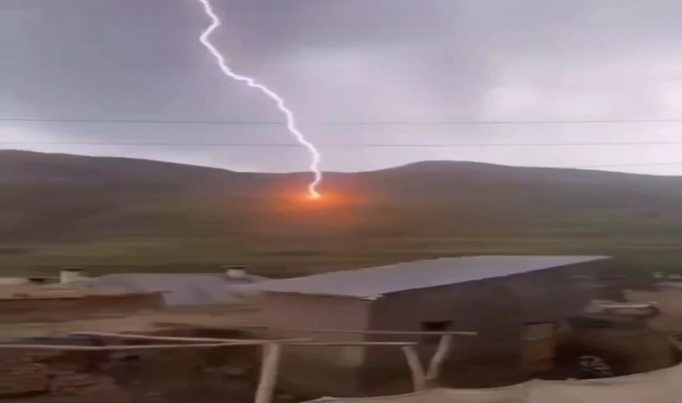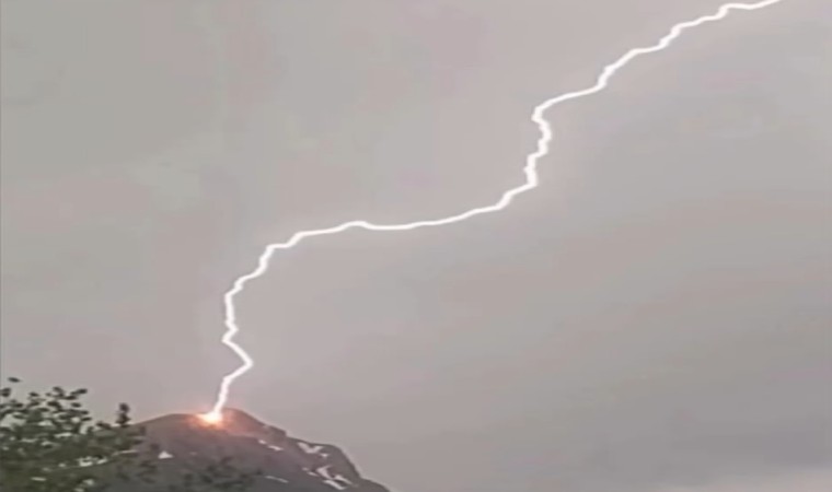 Van’da sağanak yağmur sonrası dağa yıldırım düştü.