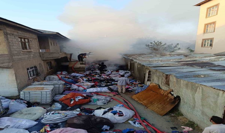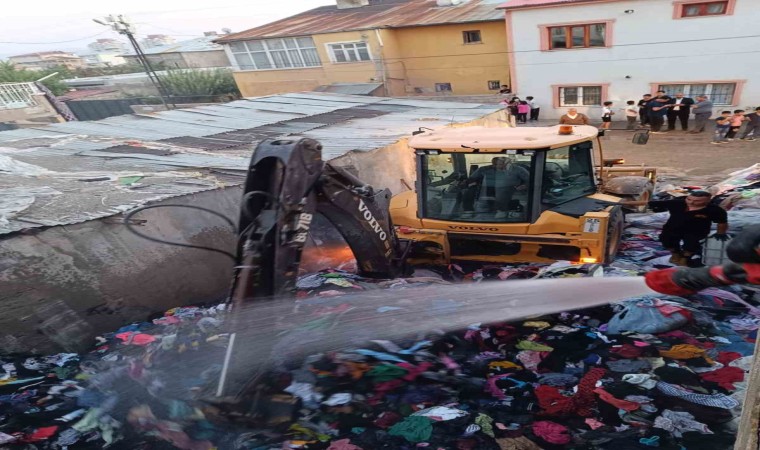 Van’ın Tuşba ilçesine bir depoda çıkan yangında korkulu anlar yaşanırken, 30 ton temizlik bezi, 210 koli cam suyu yandı.