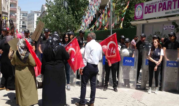 Van’da terör örgütü PKK tarafından çocukları dağa kaçırılan aileler, 85’inci haftada da eylemlerini sürdürüyor. Evlatları değişik tarihlerde PKK terör örgütü tarafından dağa kaçırılan 35 aile, ellerindeki dövizlerle DEM Parti İl Örgütü binası önüne kadar yürüdü. DEM Parti ve PKK aleyhine slogan atan aileler, bu mücadelelerinin evlatlarını alana kadar süreceğini söylediler.