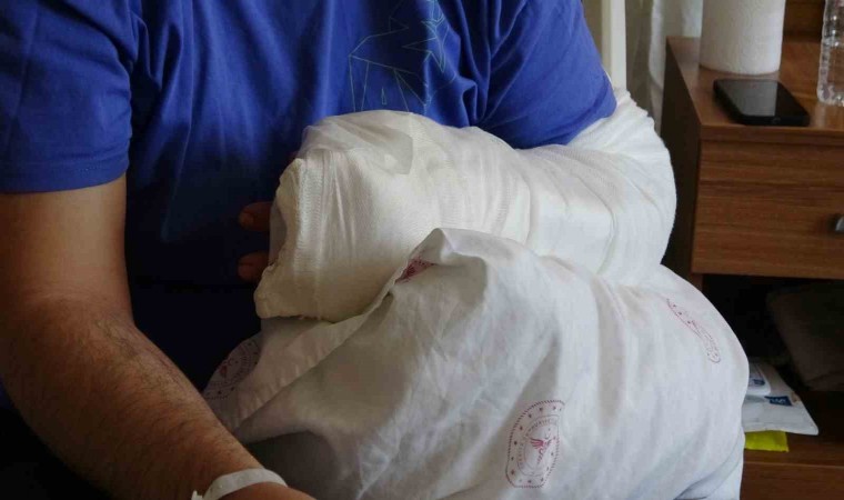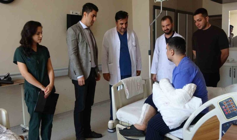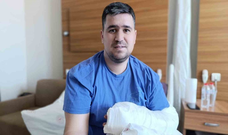 Hastanın 12 gün önce çimento karıştırma makinesine kolunu kaptırdığını hatırlatan El Cerrahisi Op. Dr. Yener Yoğun ise “Uzvun kesi değil de koparak ampute olması şeklinde bir kazaydı. Yaklaşık 3 saat içerisinde hasta hastanemize giriş yaptı. Biz de hastayı acil servisten direkt ameliyathaneye çıkardık. Normalde majör ampütasyon dediğimiz el, bilek ve omuza doğru olan yaralanmalar diye geçer. Majör ampütasyon vakalarda yaklaşık 6 saatlik bir süre vardır. Bizler de zamanlama olarak acil müdahale edebilme şansımızı bulduk. Hemen ameliyathaneye aldık. Bir ortopedi ile plastik cerrahi uzmanımız da hemen ameliyata geldi. Kopan uzvun damarını diktik, arteri diktik, kemiği kırıktı kemiği de tespit ettik, sinirin biri proksimal dediğimiz dirsek taraftan koptuğuna müdahale etmedik. İkinci aşamaya bıraktık. Bu süreçlerde sıkı takip de gerekiyor, burada yine hemşire arkadaşlara ve diğer pansuman yapan arkadaşlara da teşekkür etmek istiyorum. Çünkü ameliyattan sonra ben direkt burada kalarak takibini yaptım. Hastayı saatlik kontrol etmek gerekiyordu. Çünkü majör ampütasyonlarda hastanın durumunun kötüleşme ihtimali de var. Hem sinir yapılanması ve tendon yapılandırması dediğimiz rekonstrüksiyonu yapacağız. Yaklaşık 3-4 aylık süre sonucu elin iyileşmesi lazım, diğer süreçleri de yapacağız” diye konuştu.