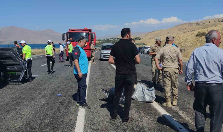 Van-Erciş kara yolu üzerinde iki otomobilin çarpışması sonucu meydana gelen trafik kazasında 2 kişi hayatını kaybetti, 4 kişi de yaralandı.