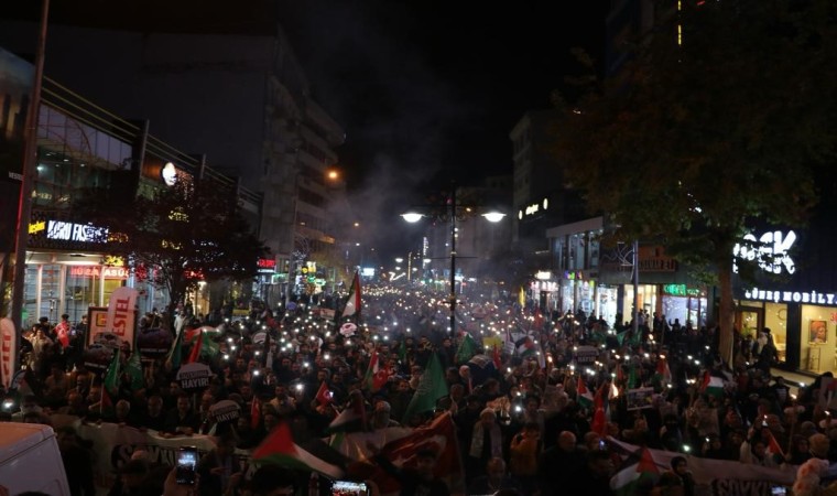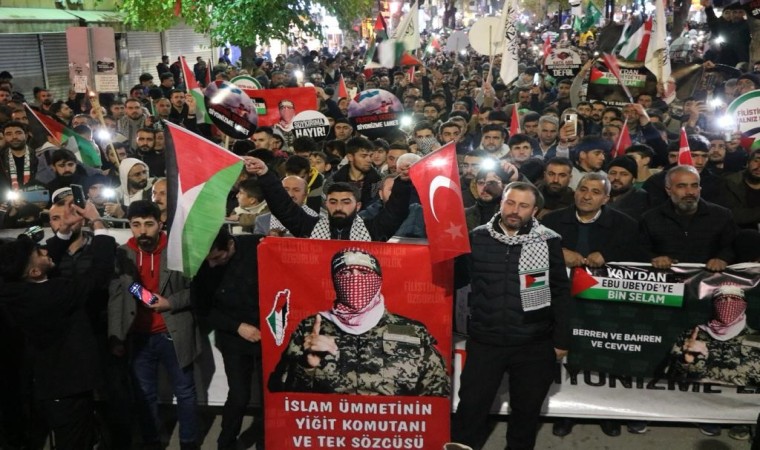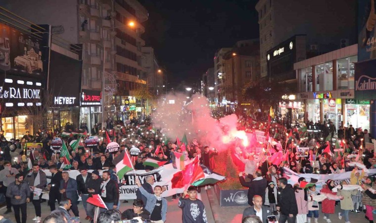 Van’da İsrail’in Filistin’e yönelik saldırıları, binlerce kişinin katıldığı meşaleli yürüyüşle protesto edildi.