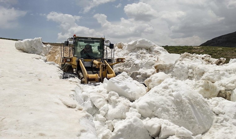 Ülke genelinde kavurucu sıcaklar etkili olurken, Van’ın yüksek rakımlı bölgelerinde karla mücadele çalışmaları devam ediyor. 3 bin rakımlı yayla ve arazi yollarında karla mücadele çalışmalarını sürdüren Büyükşehir Belediyesi Yol Yapım Bakım ve Onarım Dairesi Başkanlığına bağlı Kırkgeçit Şantiye Şefliği ekipleri, kent merkezine yaklaşık 135 kilometre uzaklıktaki bölgede hummalı bir çalışma yürütüyor. Bölgedeki vatandaşların yayla ve tarımsal arazilerine ulaşması için yoğun bir çalışma yürüten ekipler, halkın daha rahat bir şekilde yayla ve tarımsal arazilerine ulaşmalarını sağlıyor.