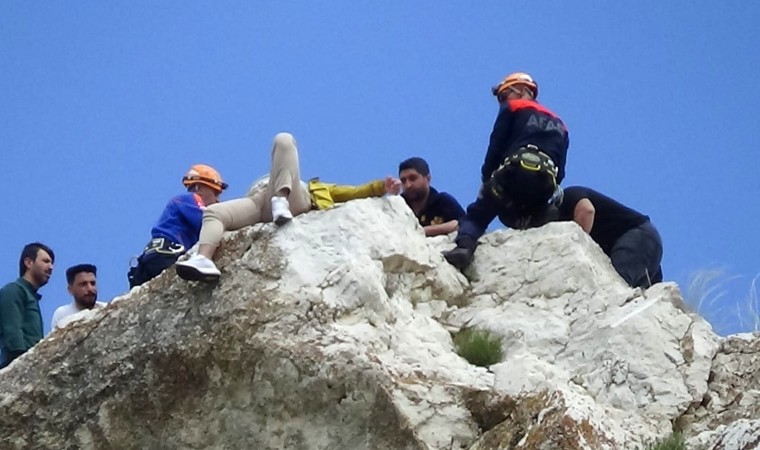Van’ın Tuşba ilçesinde Toprakkale’deki kayalıklara çıkarak intihar girişiminde bulunmak isteyen şahıs, burada baygınlık geçirdi.