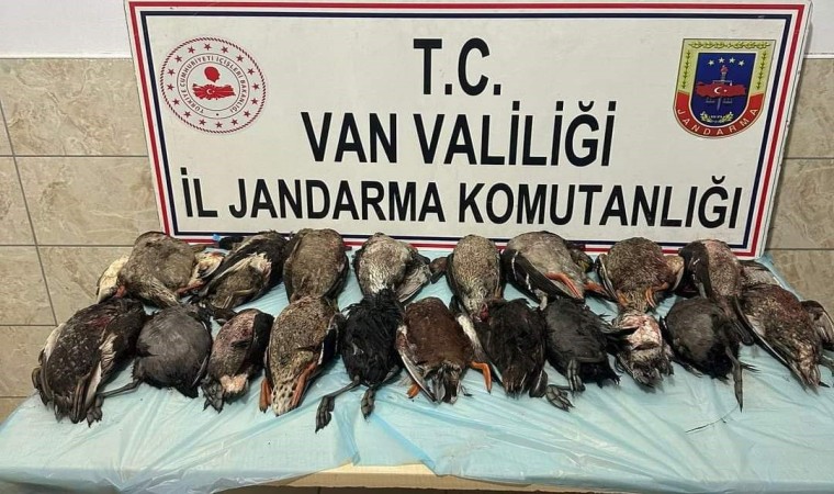 Van’ın Gürpınar ilçesinde kaçak yaban ördeği avlayan 4 kişiye tutanak düzenlenirken, 19 ölü yaban ördeğine el konuldu.