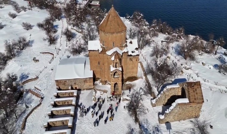 Birçok tarihi eserle adeta açık hava müzesini andıran Van’da, tarihi eserlerle bütünleşen beyaz örtünün ortaya çıkardığı manzaralar görenleri mest ediyor. Urartu Krallığı tarafından kütle halindeki taştan yaptırılan ve Urartu’nun başşehri Tuşpa’yı kuş bakışı gören Van Kalesi, Van Gölü kıyısında olup, Van merkeze 5 kilometre uzaklıkta bulunuyor. Sarp bir kayalık üzerine inşa edilen kale bin 800 metre uzunluğunda, 120 metre genişliğinde ve 80 metre yüksekliğinde. Yapılış tarihi net olarak bilinmeyen ancak 1534’te Kanuni Sultan Süleyman tarafından tamir ettirildiği bilinen Süleyman Han Camii de kar manzarasıyla fotoğrafseverleri cezbediyor. Van’ın Gevaş ilçesi sınırları içerisinde yer alan ve Ermeniler’den kalma bir kilisenin bulunduğu Akdamar Adası da beyaz gelinliğini giydi. Zirvesi deniz seviyesinden bin 912 metre yüksekte bulunan adanın batı uçlarında yüksekliği 80 metreye ulaşan dik kayalıklar bulunuyor. Ada ve içerisinde barındırdığı kilise, karla birlikte kartpostallık görüntüler oluşturdu.