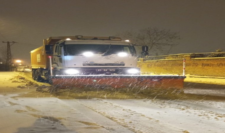 Van Büyükşehir Belediyesi karla mücadele ekipleri, akşam saatlerinde başlayan ve etkisini artıran kar yağışı ile birlikte karla mücadele çalışmasına başladı.
